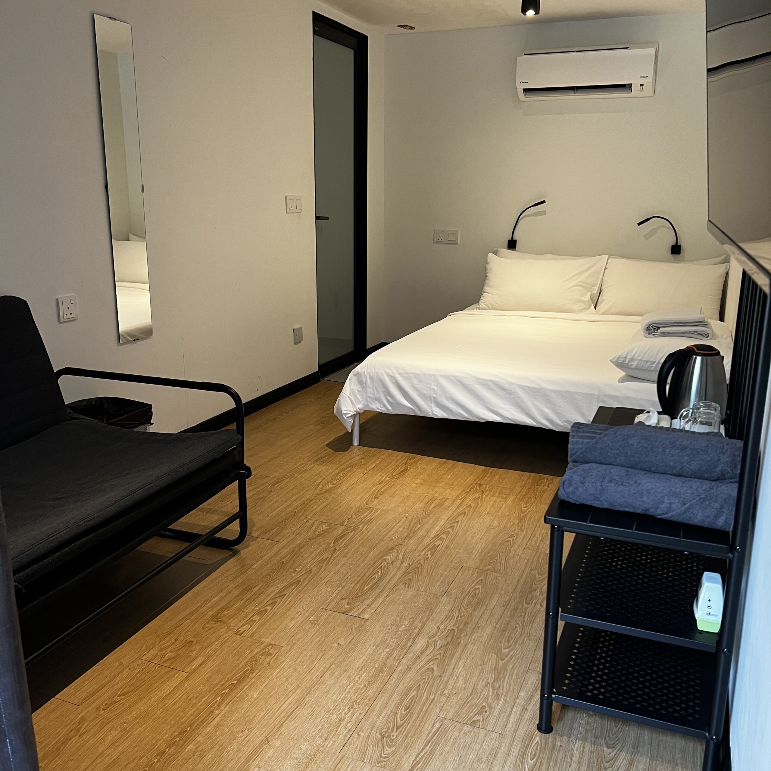 - Electric kettle + mugs